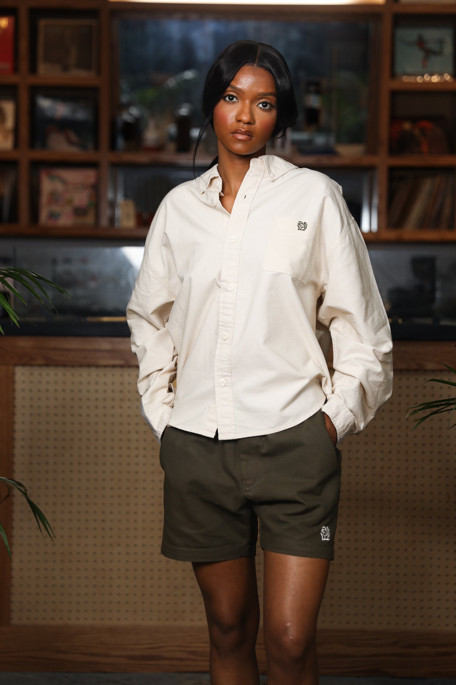 The Oxford Shorts is a clean essential with tailored ease. Cut from structured cotton canvas twill, these oxford shorts feature front crest embroidery and back script logo detailing—perfect for everyday wear with elevated intention.