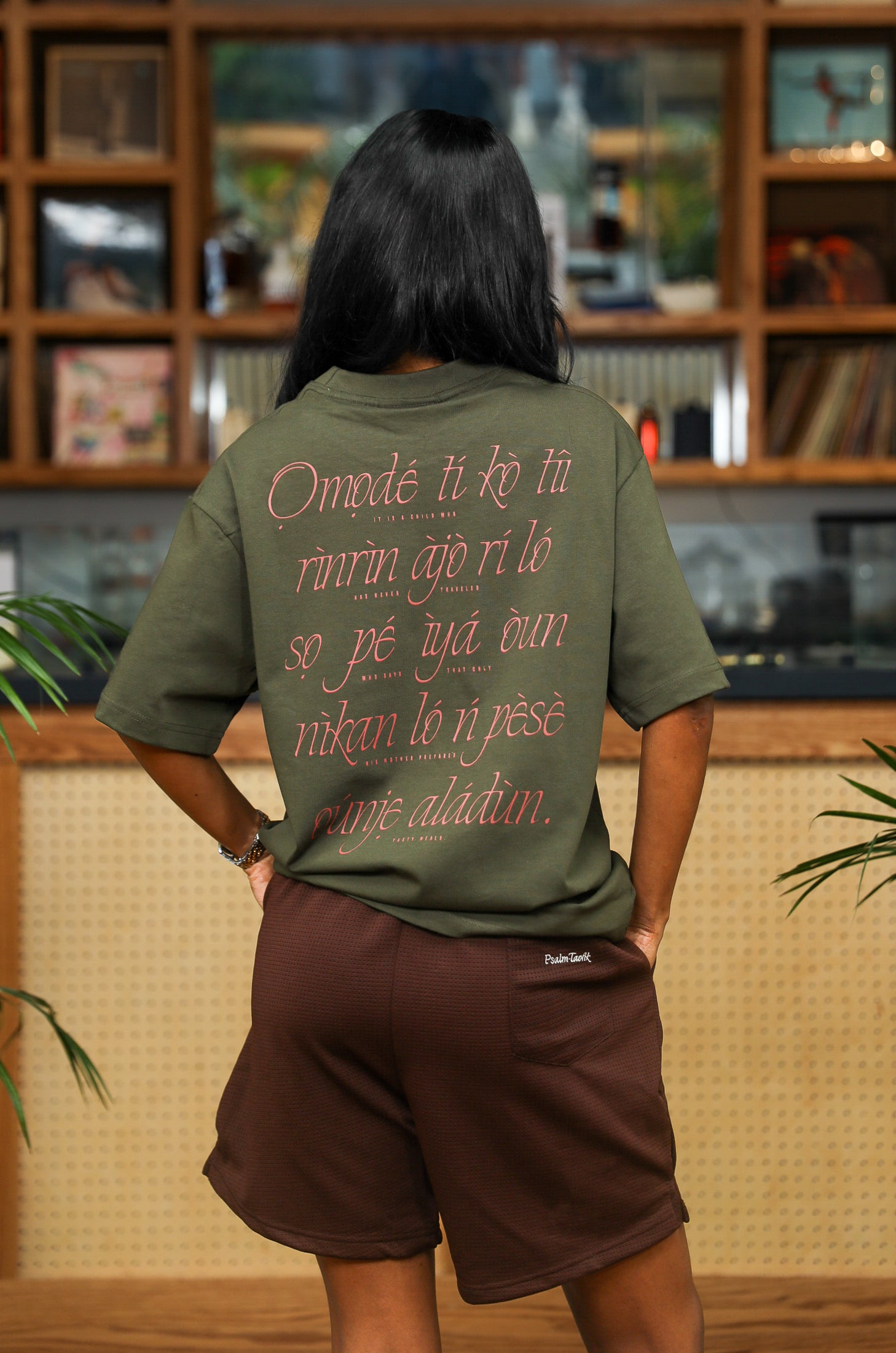 rafted from heavyweight 270 GSM cotton, this tee blends structure with comfort. Finished with our signature logo print at the chest and a Yoruba adage on the back, it’s a staple built for presence and longevity.
